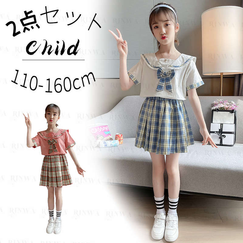 セーラー襟 学園制服 セーラー服 女の子 セットアップ 学生制服 スウィート リボン付きキッズ ベビー マタニティ キッズファッション スーツ カジュアルセットアップ カジュアルスカートセット