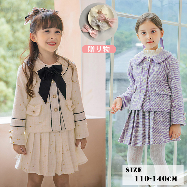 スーツ 入学式 女の子 フォーマルスーツ 子供服 セットアップ スカートセット レーススカート キッズ ジャケット