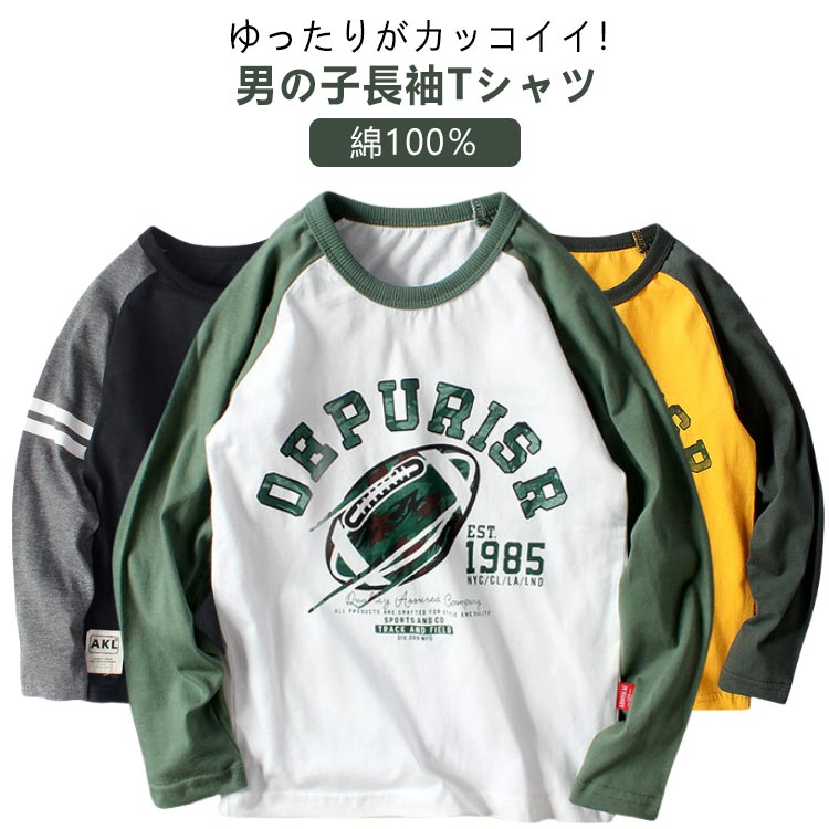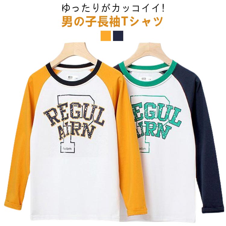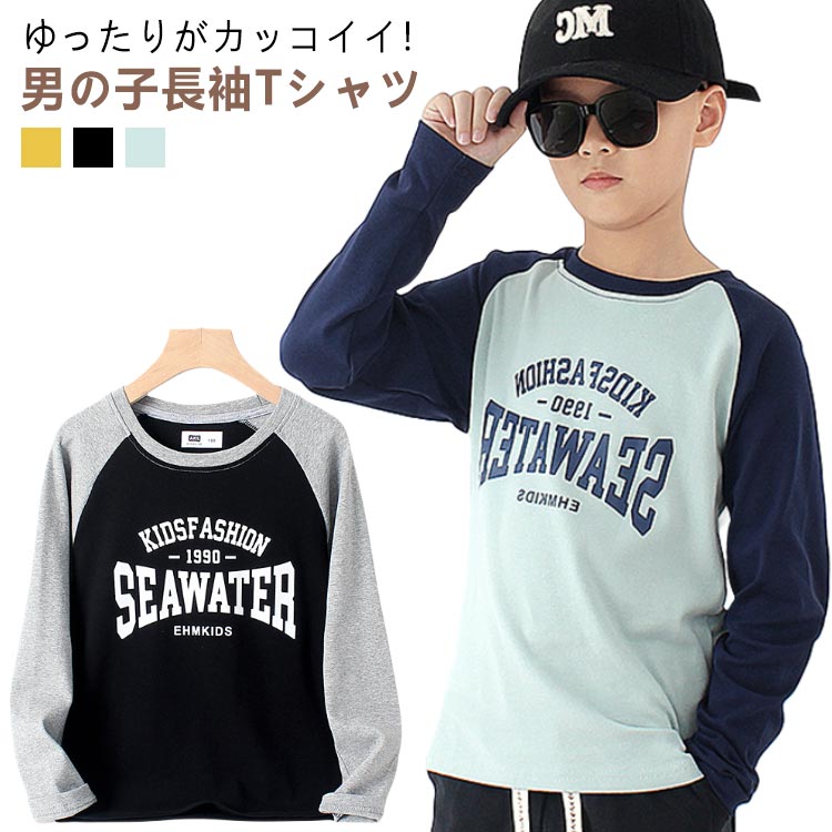長袖tシャツ 綿100 スウェット トレーナー プルオーバー ドロップショルダー キッズ 男子 丸襟 クルーネック カッコいい