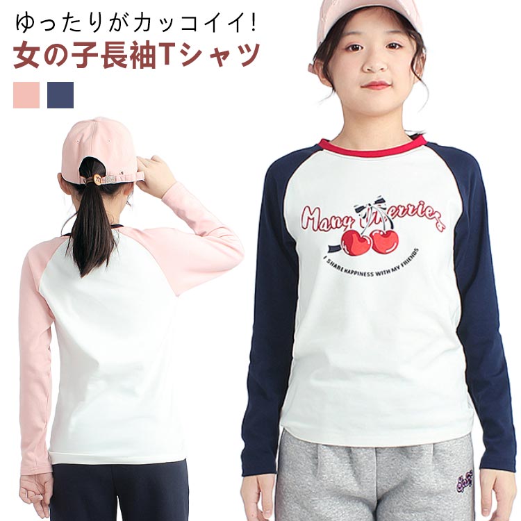 長袖tシャツ スウェット トレーナー プルオーバー ドロップショルダー キッズ 女子 丸襟 クルーネック カッコいい おしゃれ 着心地快適 運動会