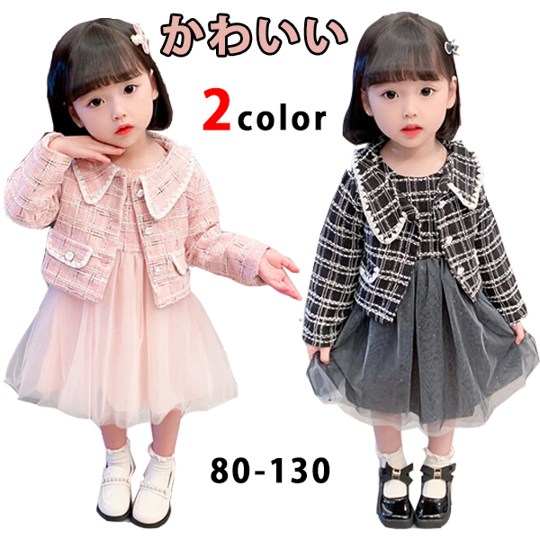 フォーマルワンピース キッズ フォーマルスーツ 女の子 ワンピース フレア フォーマル 2点セット チェック柄 長袖 女の子 ニットセーター スカートセット