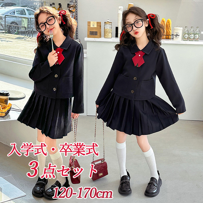 ネイビー ブラック スーツ 入学式 卒業式 女の子 スクール フォーマルスーツ 卒業式 文化祭 セットアップ 卒業式服 お受験 発表会 七五三 学園祭 フォー マル 学院風 女子制服