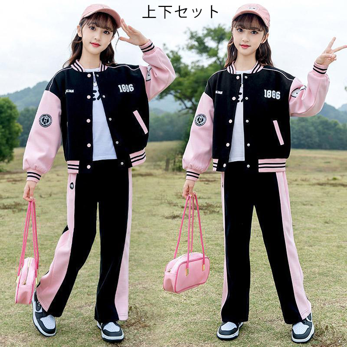上下 ガールズ キッズ 子ども用ジャージ 子供服 子供ジャージ セットアップ ジュニア 春秋 ジップアップ 韓国服 応援団 発表会