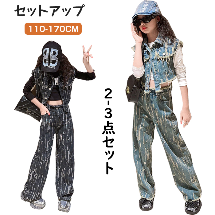 お洒落なでデニムワイドパンツ 履き心地がよい かわいい ジュニア ダンス 衣装 子供服 子ども服 こども服