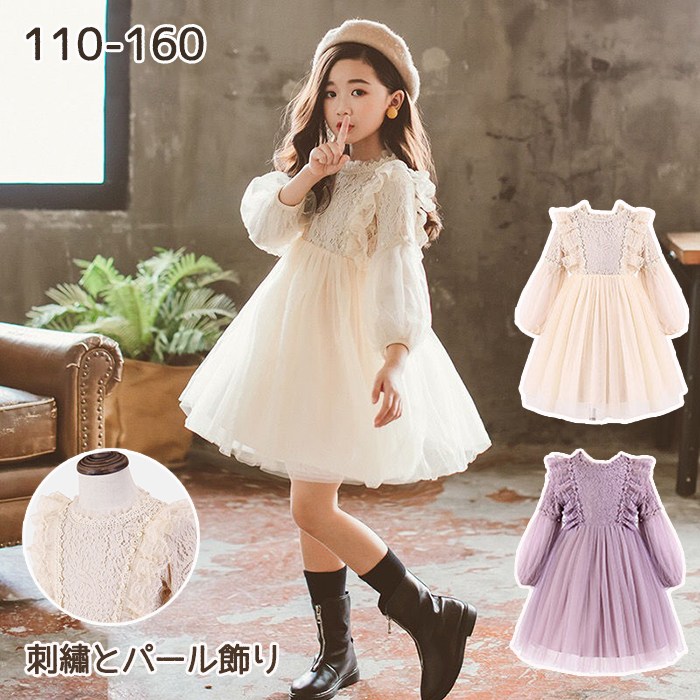 子供レースワンピース 女の子 ワンピース 110cm 120cm 130cm 140cm 150cm 160cm