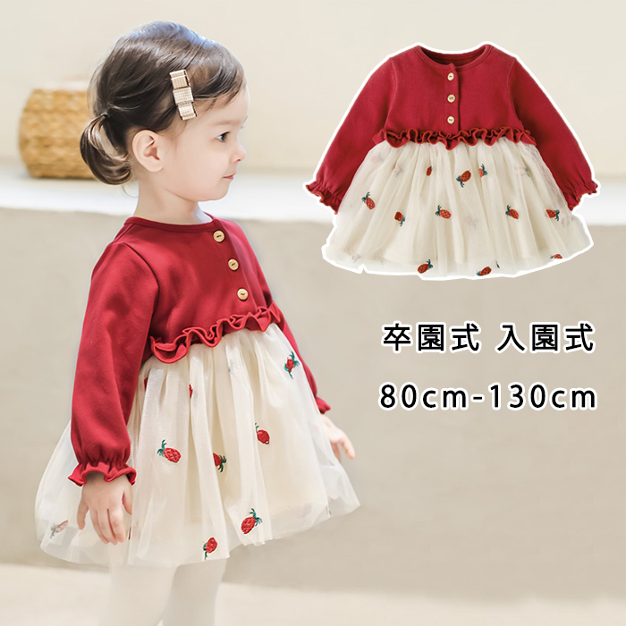 ワンピース 子供ドレス 入学式 卒園式 入園式 子供服 保育園 服 子供 きれいめ 春 秋 可愛い かわいい フォーマル 長袖 女の子 キッズ ベビー 赤 レッド 結婚式 七五三 誕生日 1歳 2歳