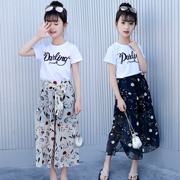 ベーシックなTシャツとシフォンワイドパンツ、カジュアルで爽やかな印象を与えてくれる キッズ ベビー マタニティ キッズファッション スーツ カジュアルセットアップ カジュアルパンツセット