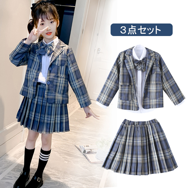 セットアップ 女の子 スーツ 3点セット チェック柄 入学式 フォーマルスーツ 制服 スクールキッズ ベビー マタニティ キッズファッション スーツ カジュアルセットアップ カジュアルスカートセット