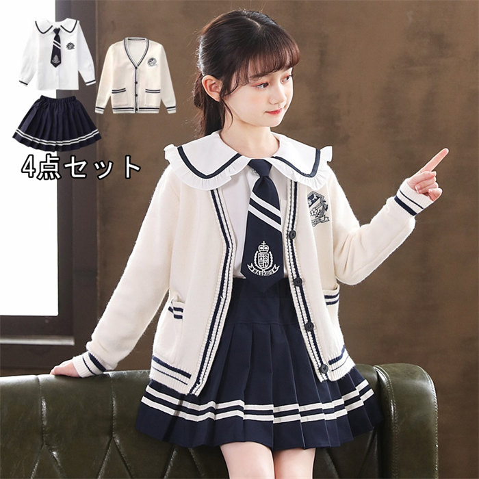 120-170cm子供制服 卒業式スーツ 女の子 4点セット カーディガン+スカート+シャツ+ネクタイ4点学生服 女子 キッズ フォーマル ジュニア キッズ 制服 子供服 上下セット ニット スクール