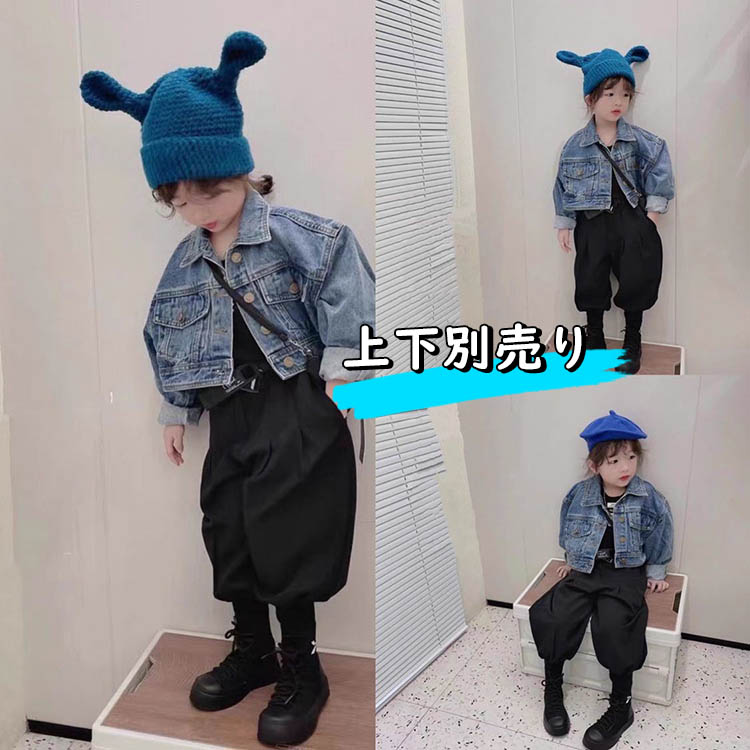 子供服 セットアップ キッズ 女の子 長袖 春秋 上下セット デニム アウター ワイドパンツ 韓国子供服 ジュニア おしゃれ 可愛い カジュアル