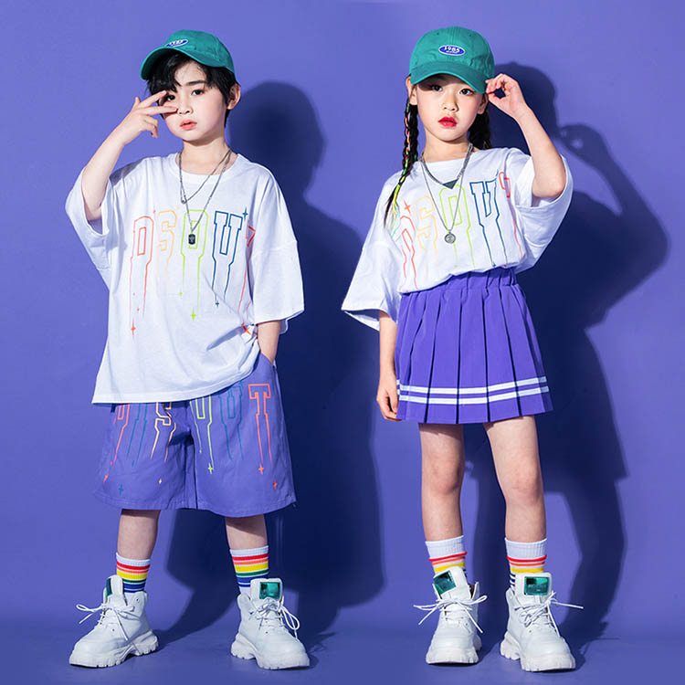 ダンス衣装 子供服 キッズ 女の子 男の子 ヒップホップ衣装 セットアップ Tシャツ ロングパンツ スカート ユニセックス ワイド ヒップホップ衣装 ダンスパンツ ステージ衣装 ジャズダンス衣装 スポ