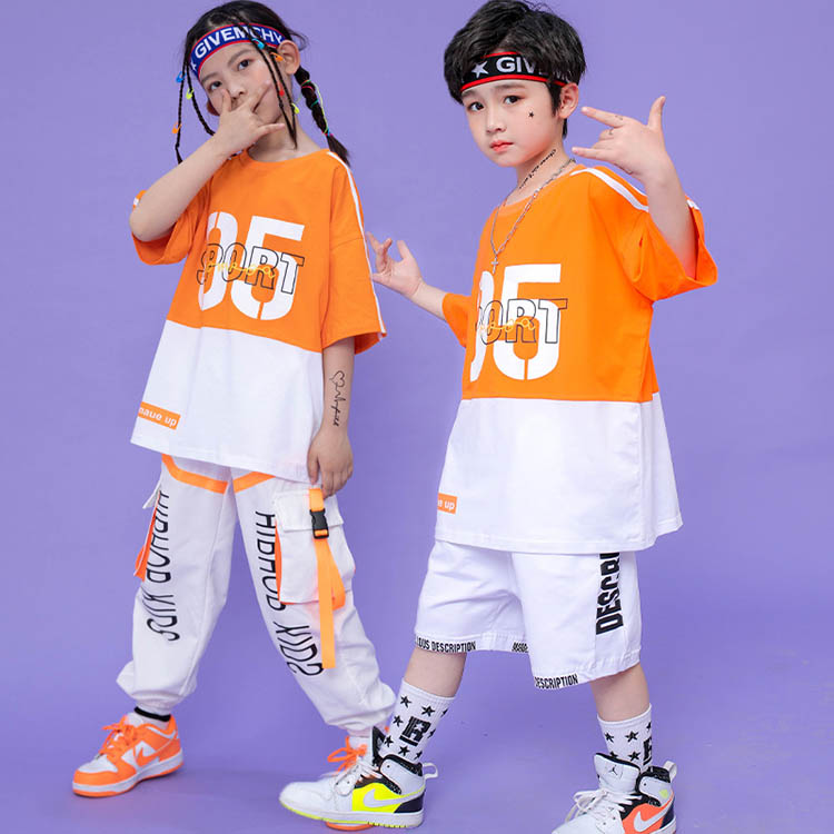 ダンス衣装 子供服 キッズ 女の子 男の子 ヒップホップ衣装 セットアップ Tシャツ ロングパンツ ユニセックス ワイド ヒップホップ衣装 ダンスパンツ ステージ衣装 ジャズダンス衣装 スポーツ おし