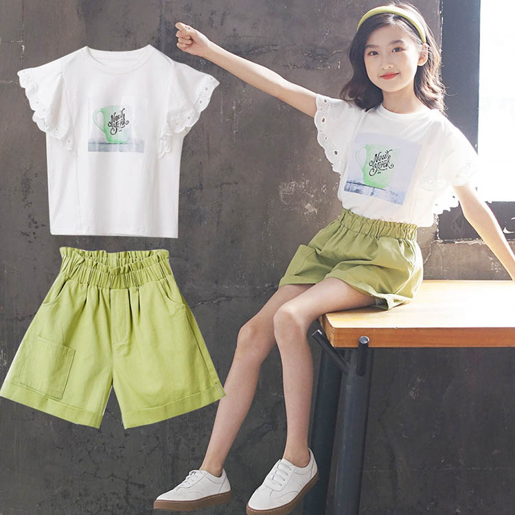 セットアップ 夏 子供服 キッズ 上下セット 2点 半袖 半ズボン tシャツ ブラウス 女の子 ジュニア 110 120 130 140 150 160 170cm おしゃれ かわいい カジュアル