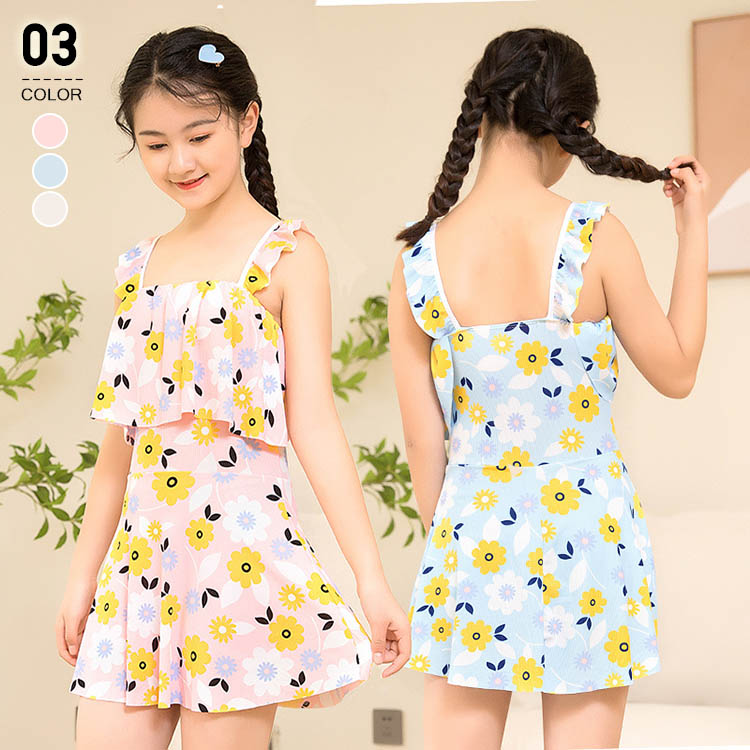 子供水着 ワンピース水着 パンツ一体型 加工 キッズ スイムウェア 女児水着 フリル フレアスカート ベビー プール 海水浴 夏 100 110 120 130 140 150