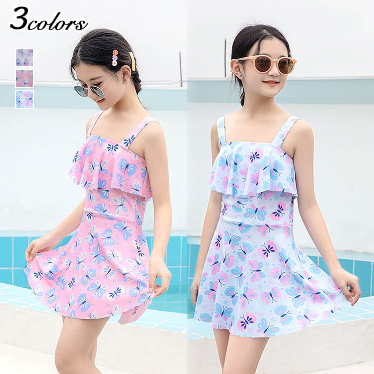 子供水着 ワンピース水着 パンツ一体型 UV加工 キッズ スイムウェア 女児水着 フリル フレアスカート ベビー プール 海水浴 夏 100cm 110cm 120cm 130cm 140cm 150