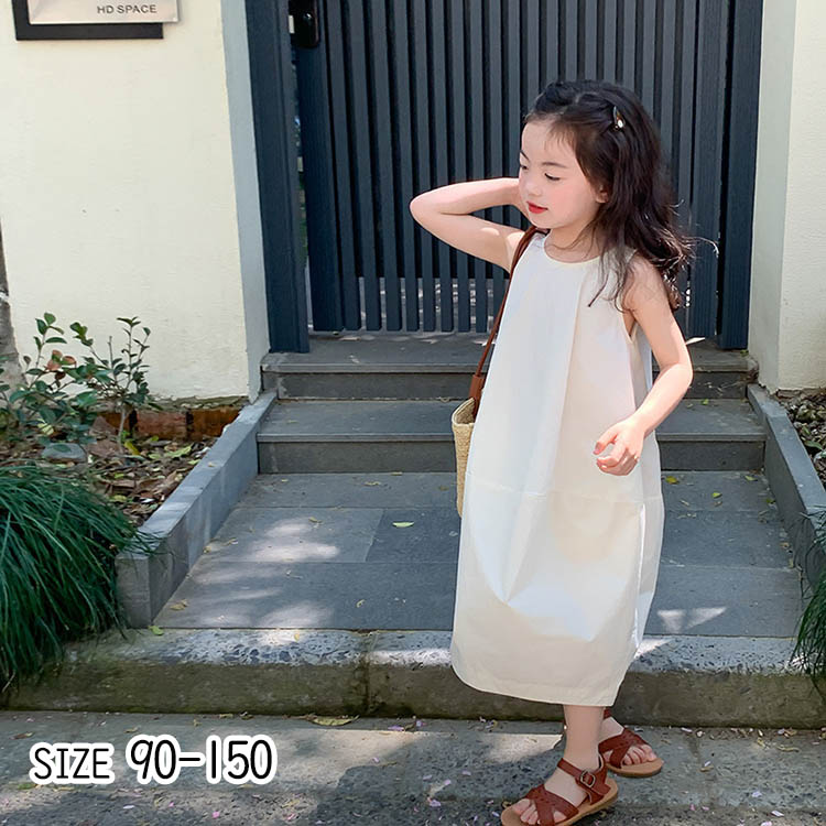 ワンピース 女の子 夏 ノースリーブ 韓国子供服 子ども服 こども服 キッズ 90 100 110 120 130 140 150 カジュアル 可愛い おしゃれ チュニック ロング丈 ガールズ 女児