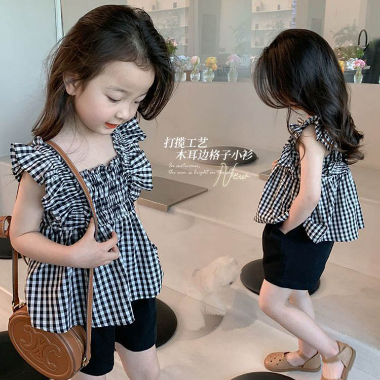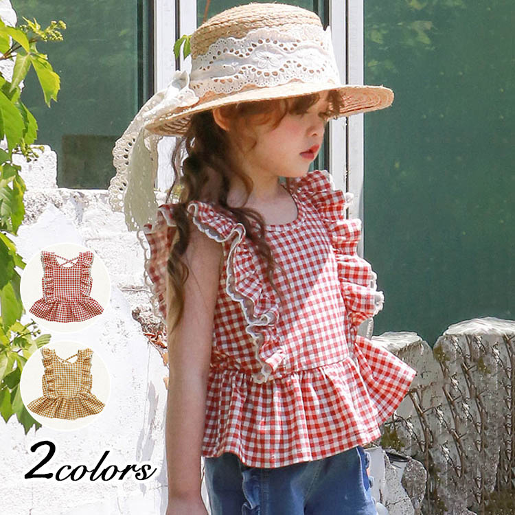 ブラウス 女の子 キッズ 子供服 女児 ガールズ トップス シャツ ブラウス ガールズ フリル レース フレア チェック柄 おしゃれ 可愛い カジュアル リゾート 旅行 90 100 110 120