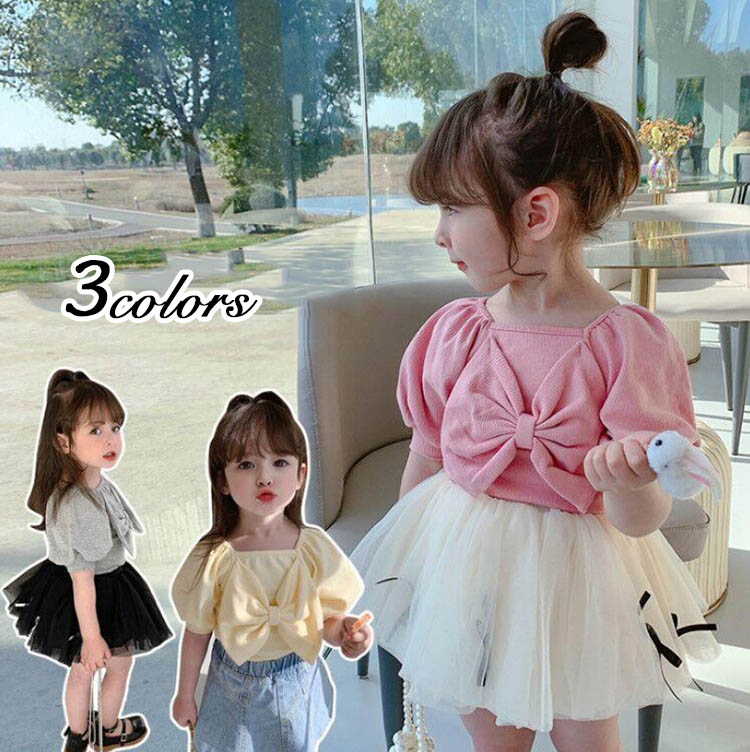 キッズ ベビー Tシャツ 半袖 女の子 ブラウス ボウタイ トップス 80cm 90cm 100cm 110cm 120cm 130cm コットン 綿 可愛い カジュアル おしゃれ