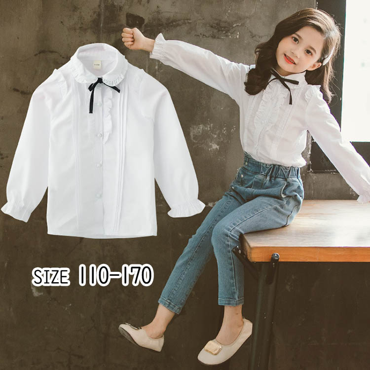 子供服 女の子 フォーマル リボン付きブラウス 長袖 ジュニア 140 150 160 170キッズ ベビー マタニティ キッズファッション トップス シャツ ブラウス