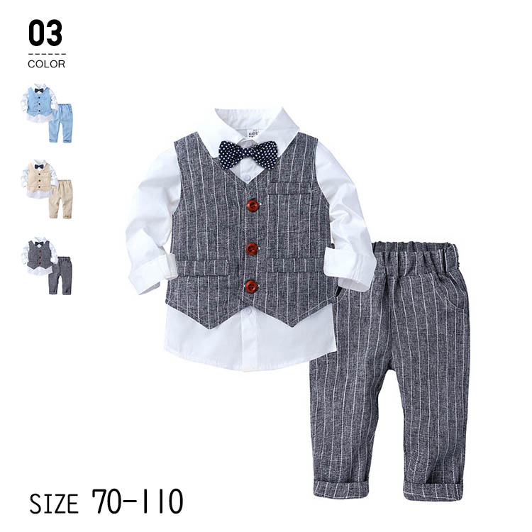 3点セット 子供服 キッズスーツ 男の子 セットアップ リボン 子供 スーツ フォーマル ベビー キッズ服 長袖 シャツ 入園式 入学式 卒業式 七五三 初節句 ベビー服