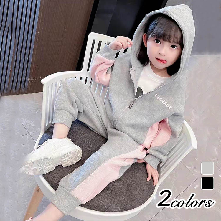 セットアップ 女の子 2点セット 子供服 キッズ 長袖 春秋 上下セット トップス Tシャツ パーカー ロングパンツ フード 子ども カジュアル スポーツウェア 運動着 おしゃれ 可愛い