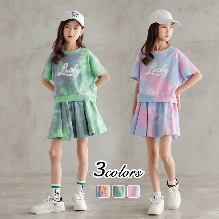 セットアップ 夏 子供服 キッズ 上下セット 2点 半袖 半ズボン プリント スカンツ 女の子 ジュニア 120 130 140 150 160cm おしゃれ かわいい カジュアル ナチュラル