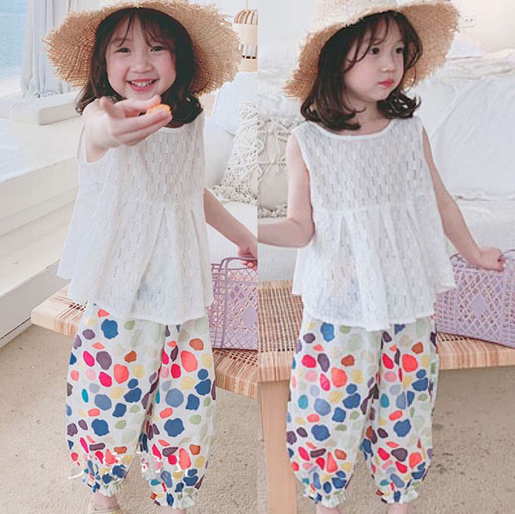セットアップ 女の子 キッズ 夏 夏服 総柄 花柄 トップス ブラウス ボトムス パンツ フリル レース 90 100 110 120 130 子供スーツ 子供服 子ども 小学生