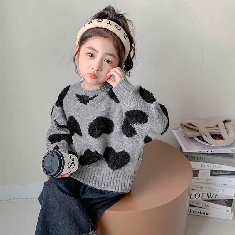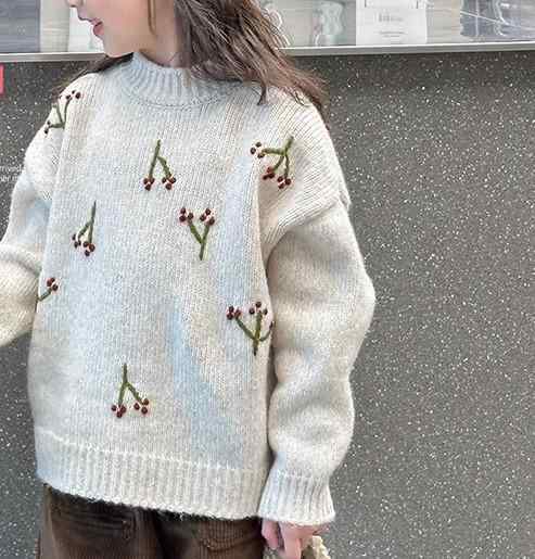 ニットプルオーバー ハート 刺繍 セーター 秋冬 新作 子供服 ファッショナブル 韓国 韓国スタイル お洒落 可愛い かわいい