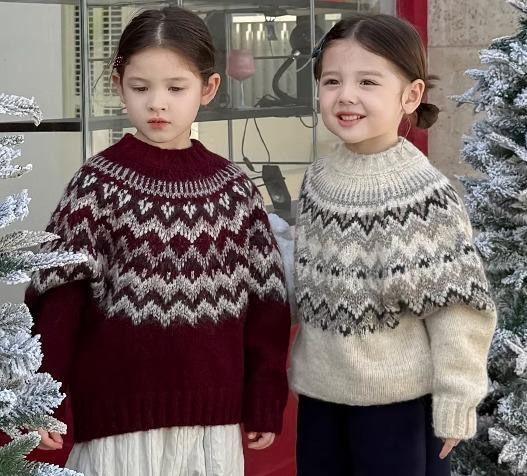 女の子 レトロ 幾何学柄 セーター ニットプルオーバー 秋冬 新作 子供服 ファッショナブル 韓国 韓国スタイル お洒落 可愛い