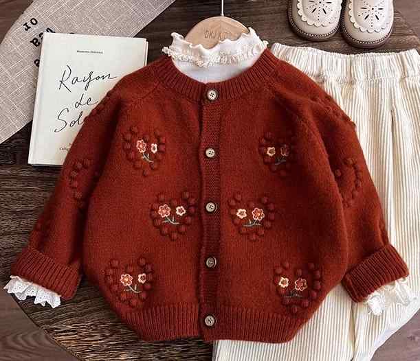 女の子 カーディガン セーター Vネックニット 秋冬 新作 子供服 ファッショナブル カジュアル 韓国 韓国スタイル お洒落
