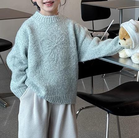 ルーズ ニットプルオーバー 柄 セーター ピンク 秋冬 新作 子供服 ファッショナブル 韓国 幼児 保育園 幼稚園 小学生 学校