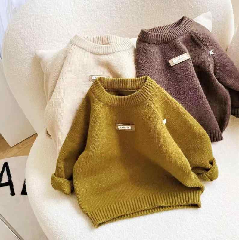 無地 ワンポイント セーター ニットプルオーバー 秋冬 新作 子供服 ファッショナブル 韓国 韓国スタイル お洒落 可愛い