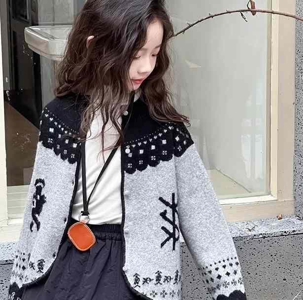 ジャカード ニットカーディガン レトロ柄 セーター 秋冬 新作 子供服 ファッショナブル 韓国 韓国スタイル お洒落