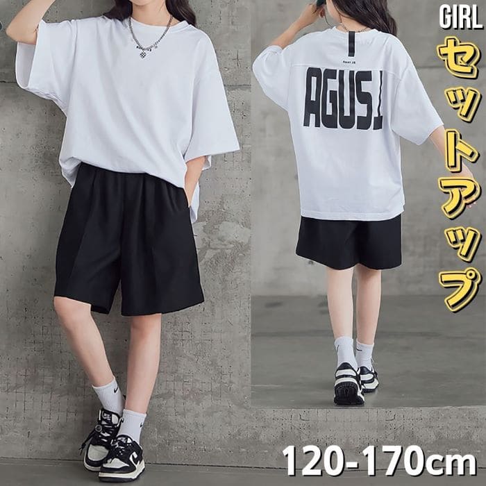 小学生 セットアップ キッズ 女の子 バックロゴ Tシャツ ショート パンツ 2点セット 夏 韓国 カジュアル ファッション 通学 可愛い コーデ 15500