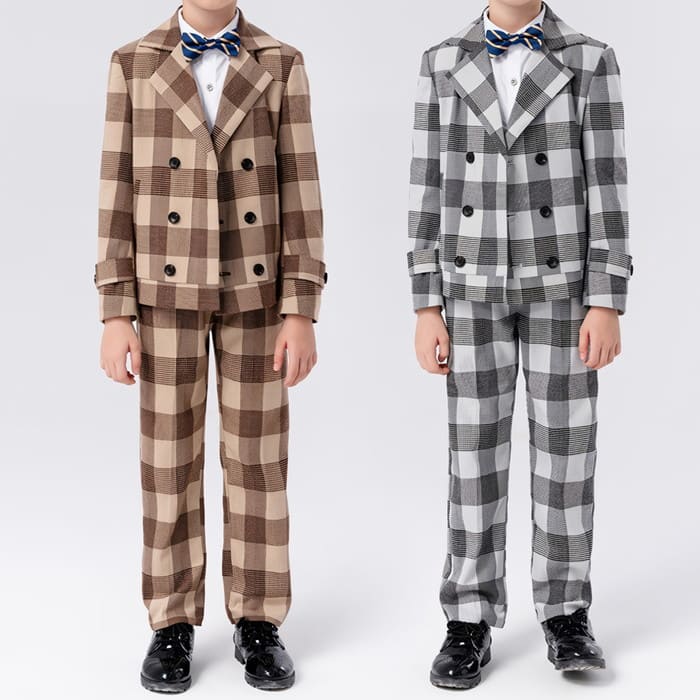小学生 男の子 小学校 卒業式 卒園式 入学式 入園式 蝶ネクタイ チェック柄スーツ ジャケット パンツ シャツ 4点セット 男子 フォーマル 子供 スーツ 子供服 七五三 結婚式 発表会 17652
