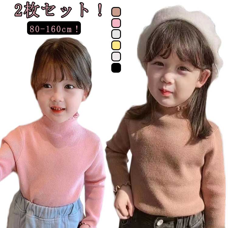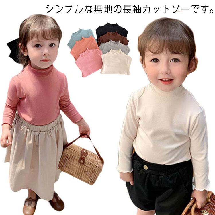 キッズ 長袖tシャツ 女の子 子供服 カットソー 綿 トップス ベビー服 フリル ハイネック 春秋 重ね着 おしゃれ 可愛い 無地 80 90 100 110 120 130 ガールズ シンプル