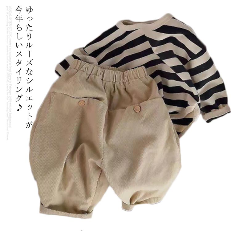 着るだけで旬スタイル♪ ゆるシャツ スウェット トップス サルエルパンツ 2点セットキッズ ベビー マタニティ キッズファッション スーツ カジュアルセットアップ その他