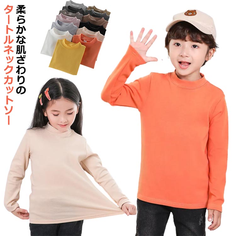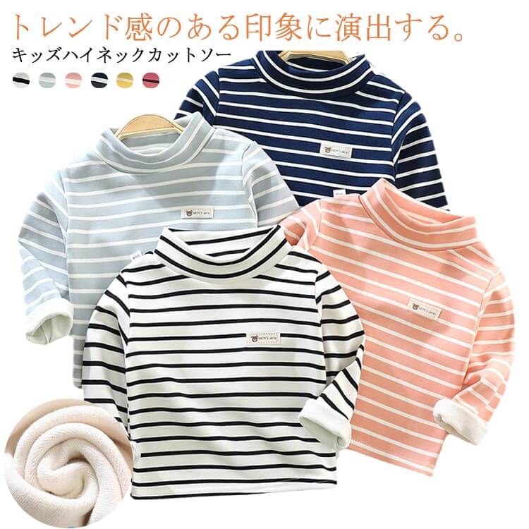 ハイネック 可愛い ボーダー柄カットソー 重ね着 長袖 暖かい 80~140キッズ ベビー マタニティ キッズファッション トップス Tシャツ カットソー