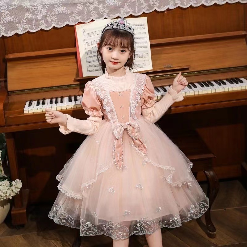 キッズ 子供服 ワンピース プリンセスワンピース 女の子 春秋 ゆったり 可愛い ジュニア 長袖 薄手 リボン付き チュール 003