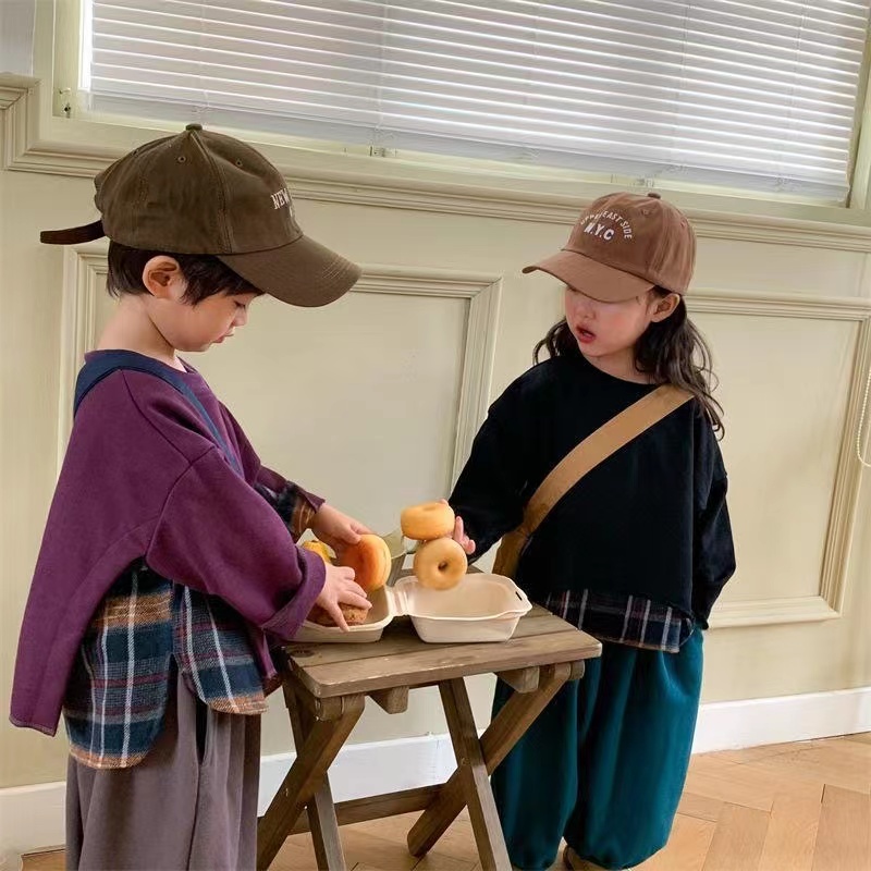 キッズ 子供服 ベビー服 トップス カジュアル 重ね着風 男女兼用 春秋 ゆったり 可愛い ジュニア 長袖 薄手 チェック柄 009
