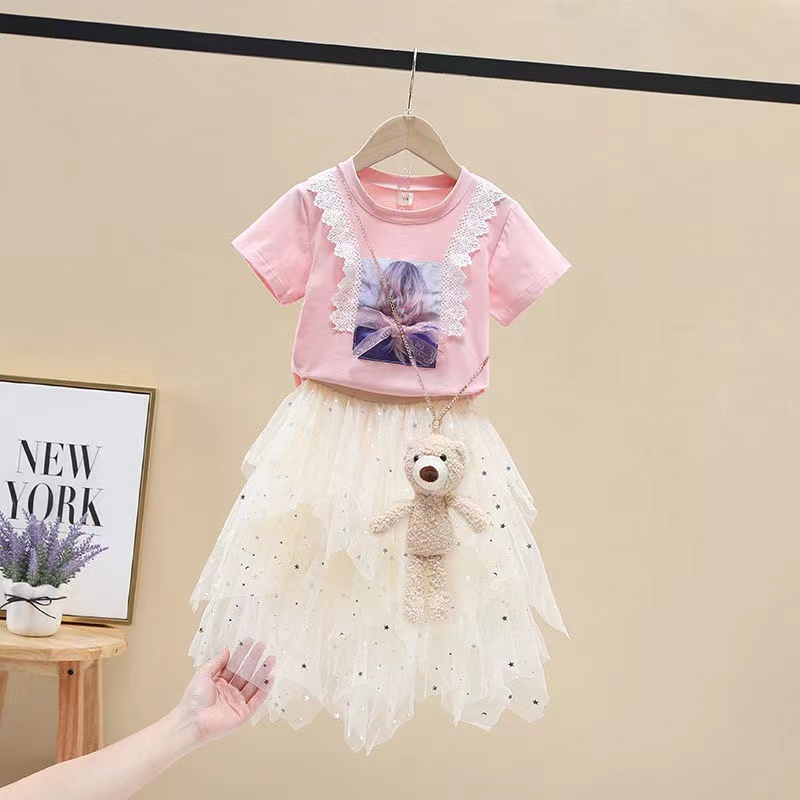 キッズ 子供服 上下セット セットアップ Tシャツ+スカート 2点セットキッズ ベビー マタニティ キッズファッション スーツ カジュアルセットアップ カジュアルスカートセット