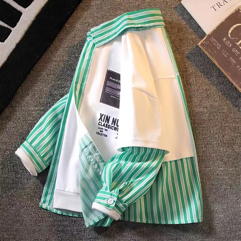キッズ 子供服 デニムコート ショットコート トップス 男の子 春秋 秋 ゆったり 可愛い 長袖 英文字 薄手 ストライプ柄 011(2色90-150)