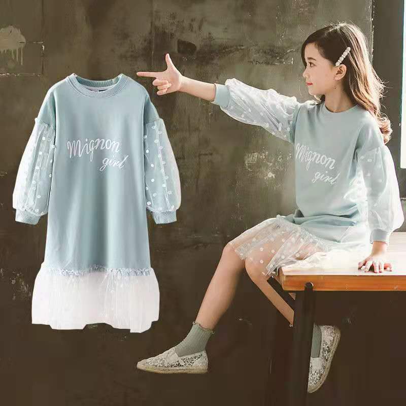ロングシャツ トップス 子供服 レース キッズ 女の子 長袖 春夏 022(2色110-170)