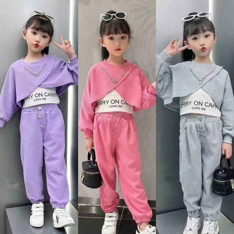 キッズ子供服 上下セット セットアップ キャミソール+トップス+パンツ 3点セットキッズ ベビー マタニティ キッズファッション スーツ カジュアルセットアップ カジュアルパンツセット
