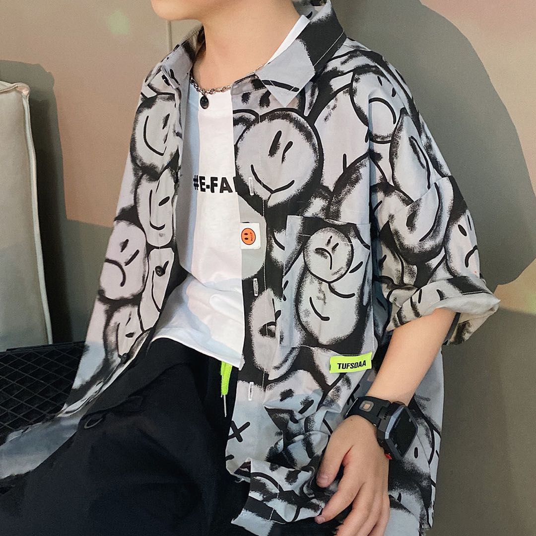 シャツ トップス キッズ 子供服 夏 ゆったり 可愛い スマイル柄 半袖 薄手 男の子 030