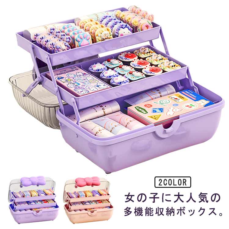 ジュエス 3段 リボンロック 仕切り 大容量 キッズ 宝石箱 バスケット 女の子に最適なアクセサリー収納ボックス