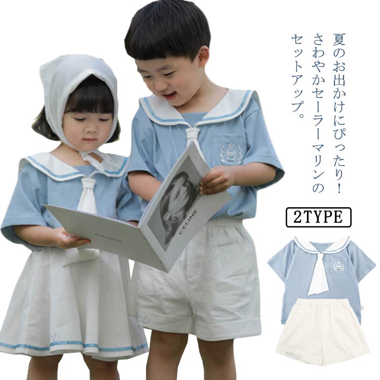 子供服 セーラー セットアップ 半袖シャツ*パンツ スカート 双子 夏キッズ ベビー マタニティ キッズファッション スーツ カジュアルセットアップ カジュアルパンツセット
