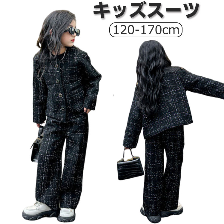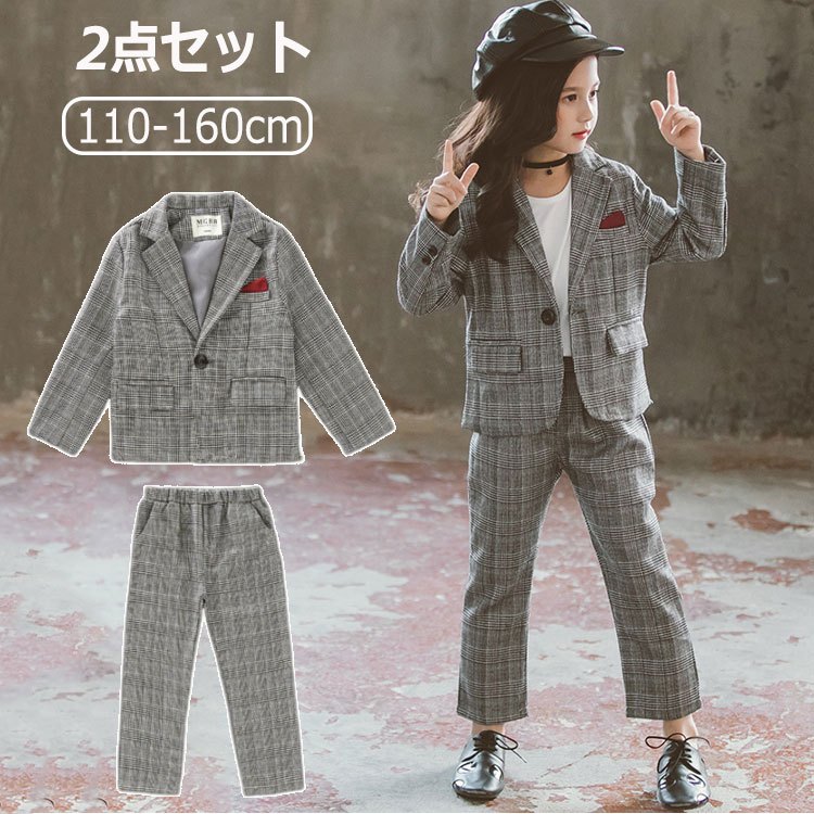 フォーマルスーツ チェック柄 セットアップ 女の子 スーツ 入学式 パンツセット 子供服 キッズフォーマル