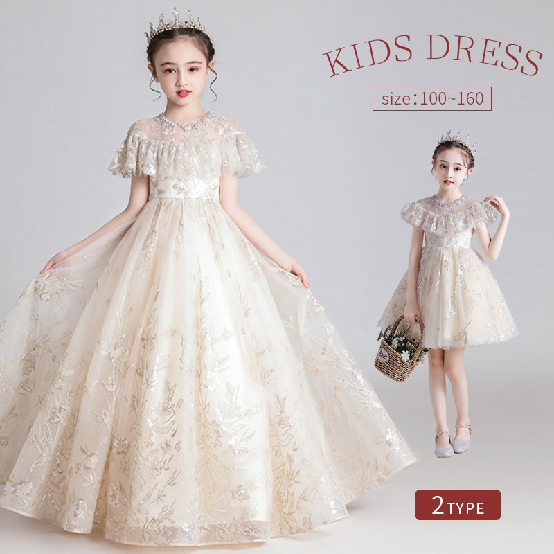 子供 結婚式ドレス 七五三 豪華ドレス 子供 子供フォーマル ジュニアドレス コンクールドレス シャンパン 110 120 130 140 150 165 フォーマルドレス