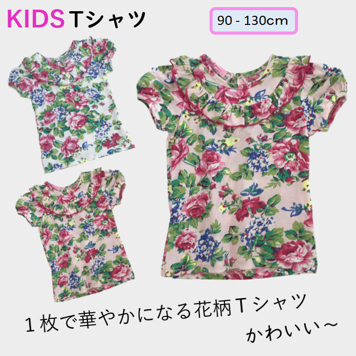 子供 Tシャツ 女の子 半袖 子供Tシャツ 子供服 フリル 半袖 Tシャツ おしゃれ 可愛い子供服 フラワー リボン